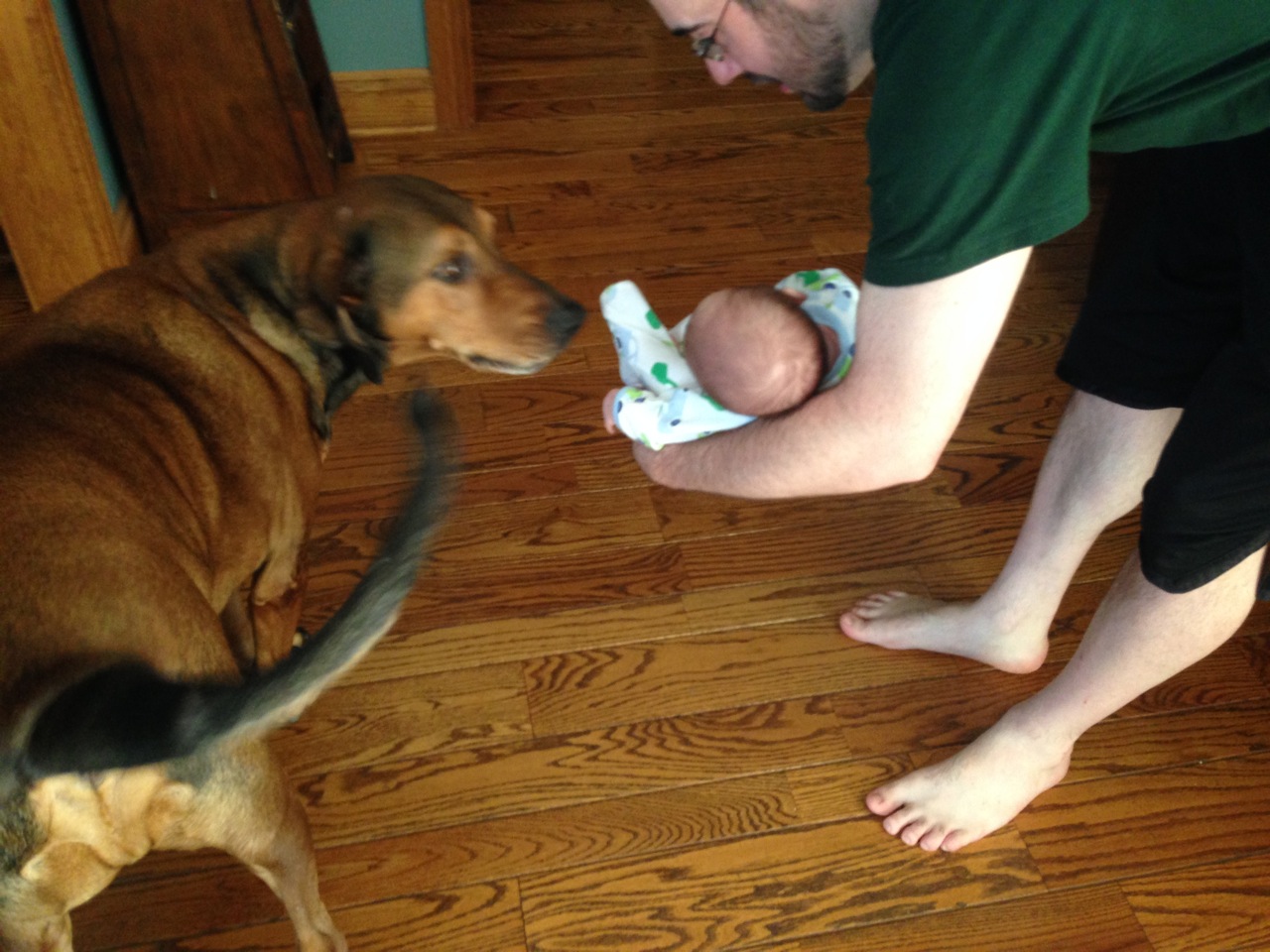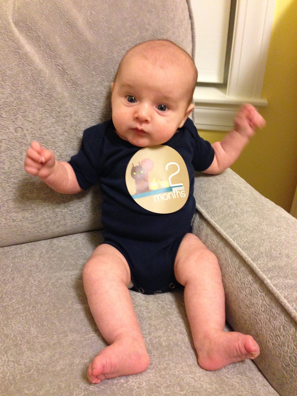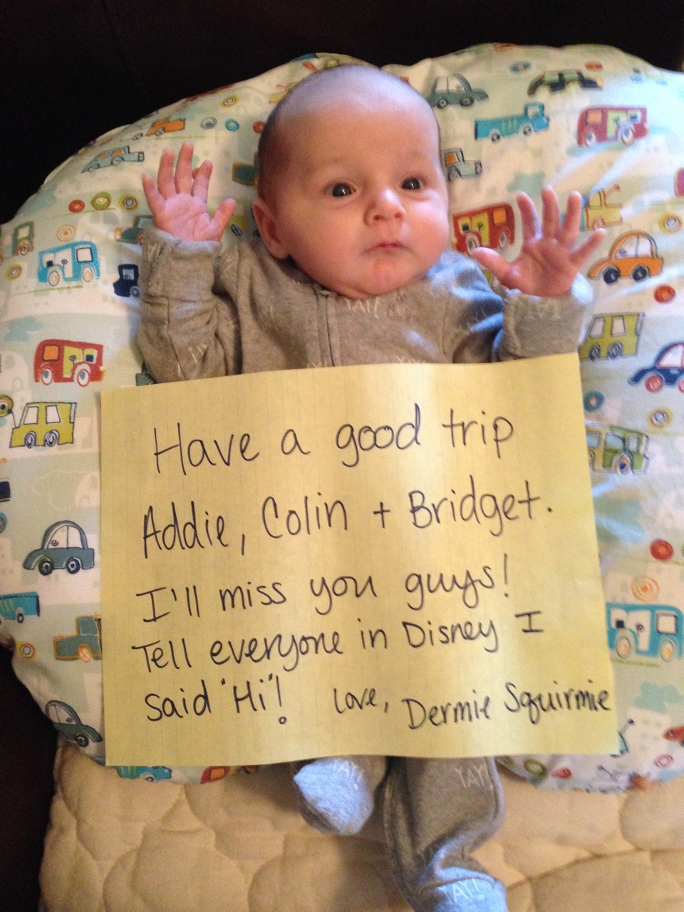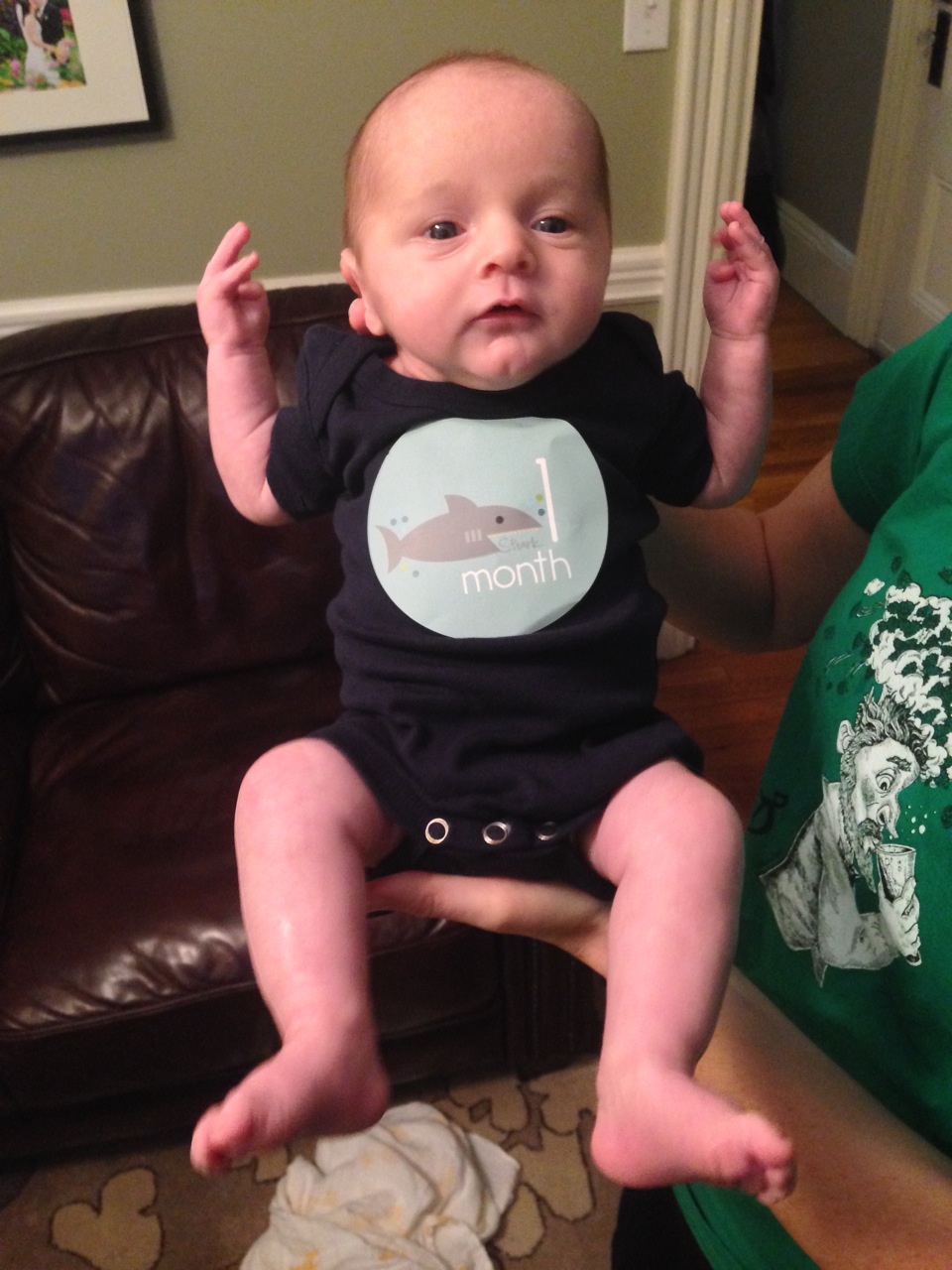 Crazy Uncle Jimmy was also here, but said both “I don’t take pictures” and “I don’t hold babies until they’re at least a couple of weeks old.” Unlce Jimmy also told Dermot that he already has more hair than his Dad. Thanks, Uncle Jimmy!